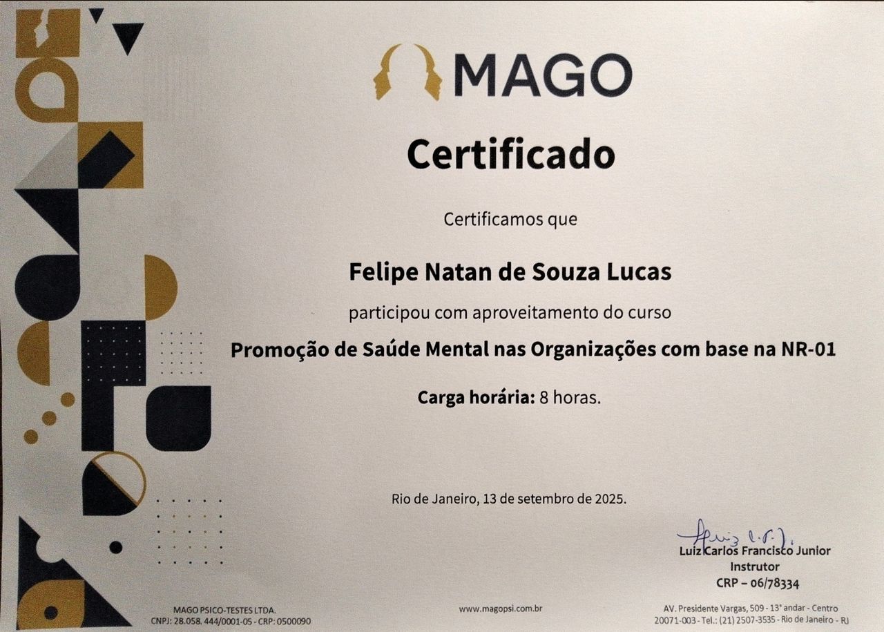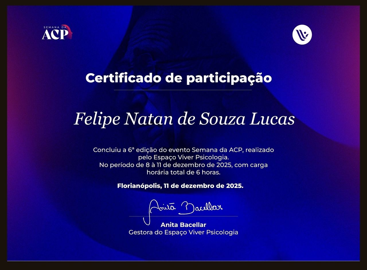 - Pós-Graduando em Psicologia Humanista: Abordagem Centrada na Pessoa pela FacuMinas
